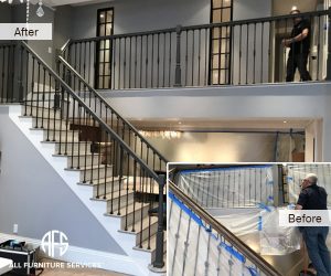 Banisters Spindles Stair cases wood work furniture restoration color change stain finish clear coat refinishing